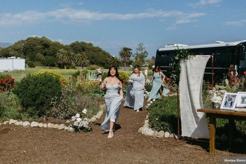 Wedding Planner: White Sage Wedding & Events | Photographer: Monique Bianca | Bride's Dress: Enzoani | Groom's Tux: Generation Tux | Dessert: Solvang Bakery | Catering: Event Staff Solutions & Chente | Ceremony Venue: Our Lady of Mount Carmel Catholic Church | Getaway Car: Speedster | DJ: DJ G-Cue | Florals: Intrepid Floral Co | Harpist: Laurie Rasmussen | Lighting: In The Mix | Reception Venue: Dos Pueblos Orchid Farm | Rentals: Amigo Party Rental, Otis & Pearl, My Lovely Event | Cinema: Morgan Hydinger | Shuttle: Jump On The School Bus