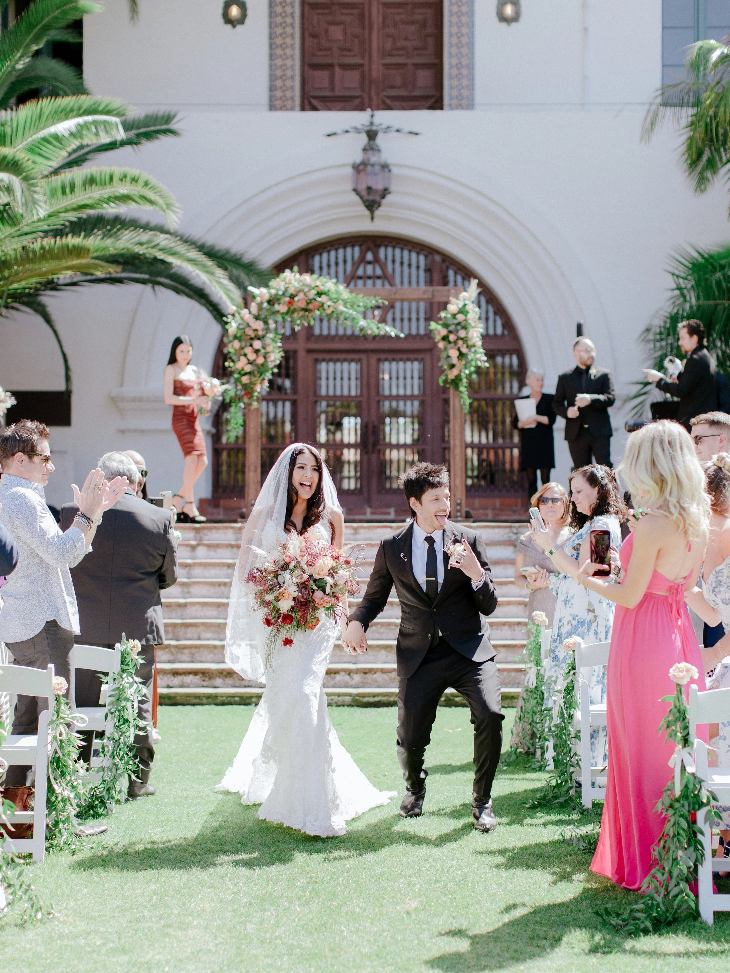 We are loving this shot of the musical power couple Kevin and Agina just seconds after they tied the knot at the Santa Barbara Courthouse. Rockstar details filled the day, and later on, the couple and their guests enjoyed a reception at the Kimpton Canary rooftop.
