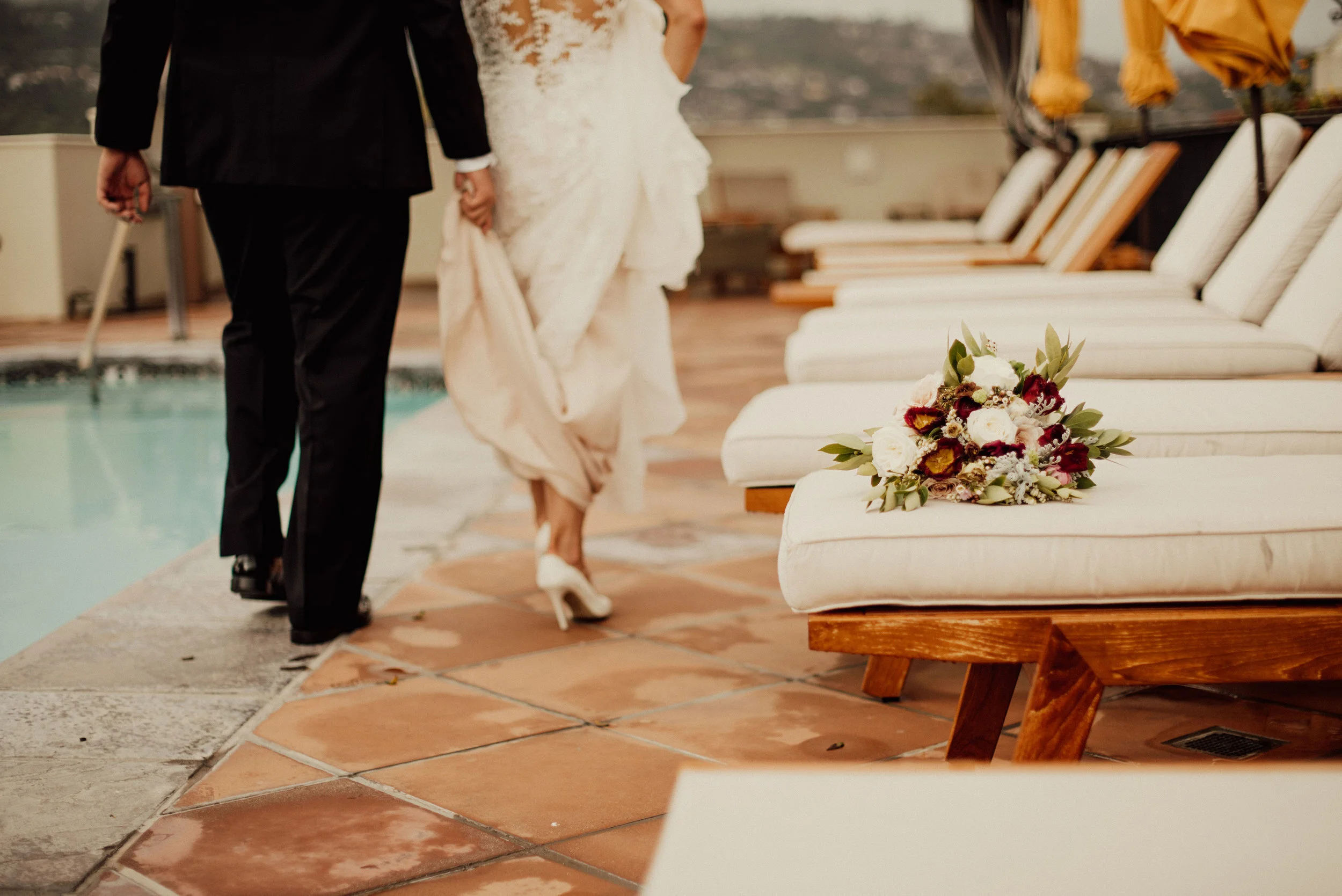The couple tied the knot on the rooftop of the luxury Santa Barbara wedding setting, the Kimpton Canary Hotel. Wedding photographer Sefra Kay Photography didn’t miss a beat and memorialized every moment from the bride’s hair and beauty session by Joyce Moran to the bride and groom’s intimate stroll by the rooftop pool. Cakes by Denise created a lovely, custom wedding cake for the occasion and California wedding DJ, DJ Richterscale kept the reception going with a perfect mix of favorite tracks. The day went off without a hitch and was the perfect way for the bride and groom to express their love for each other.